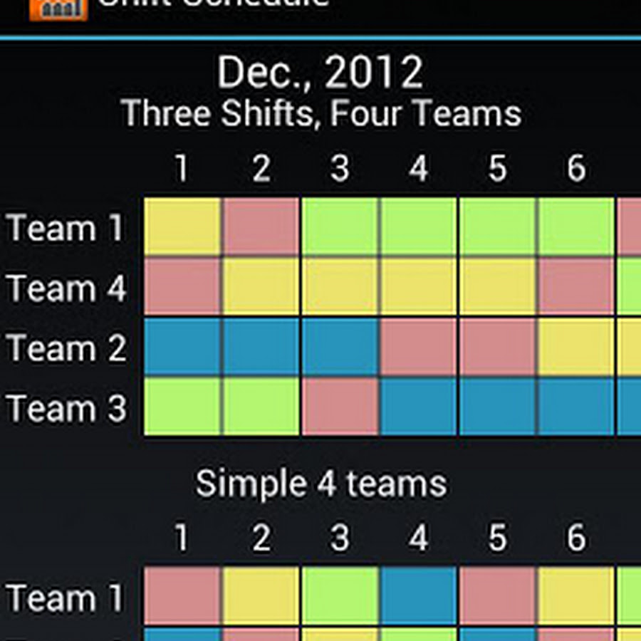 Shift Schedule + Alarm Clock - Android Apps on Google Play from lh6.ggpht.com Hence there is no scope for growth as each shift crew is in their own world. 2/3/2 fortnight patterns. The rotation is 2 on 3 off 2 on 2 off 3 on 2 off. This pattern is designed for 4 teams, composed of as few or as many staff as you like. Every 28 days, it cycles 4 teams through a very balanced flow of 8. In order to get the most fair schedule between three employees, if one employee works each shift, the 14 shifts need to be divided in the following manner: You could set it up so that team 1 works first shift one week, third shift the next week, and second shift the last week. Workers don't get more than three days off in a row.