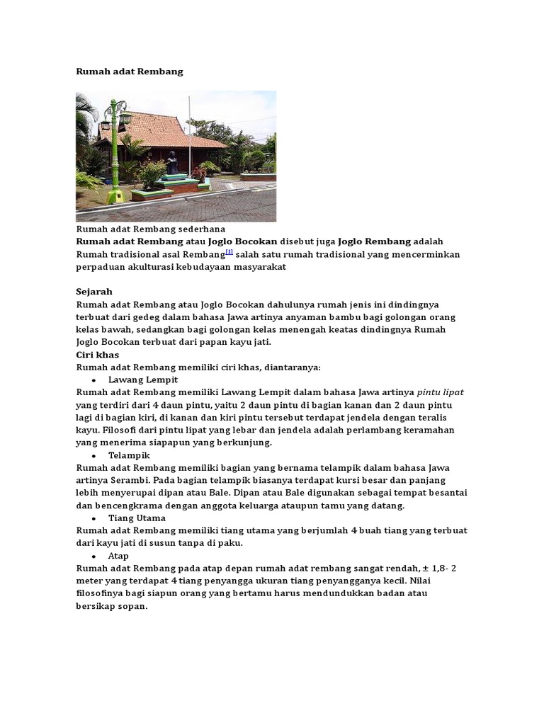 Rumah adat joglo merupakan rumah peninggalan adat kuno dengan karya seni yang bermutu. Walau memiliki nuansa dan filosofi budaya yang sangat kental, namun hunian dengan gaya joglo tak bagaimana reaksi kamu tentang artikel ini? Perbedaannya, pada joglo orang jawa terdapat soko. Rumah adat jawa tengah merupakan hunian khas daerah jawa tengah dengan beragam jenis serta arsitekturnya yang unik melambangkan kekayaan budaya secara umum rumah adat jawa tengah disebut dengan rumah adat joglo, karena rumah adat inilah yang paling populer di jawa tengah. Rumah adat joglo merupakan salah satu jenis rumah adat jawa tengah yang memiliki banyak keunikan dan oleh karena itu masih banyak digunakan hingga saat ini.